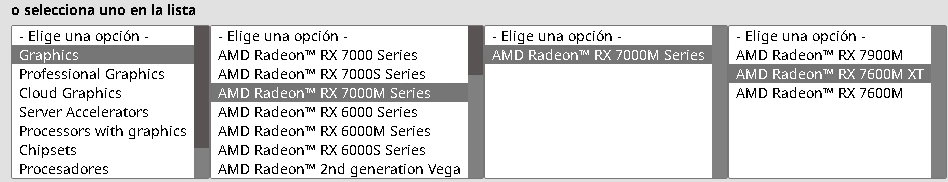 1. Dirigite a la página principal de AMD y buscar el modelo exacto de nuestra tarjeta grafica amd y descargar.