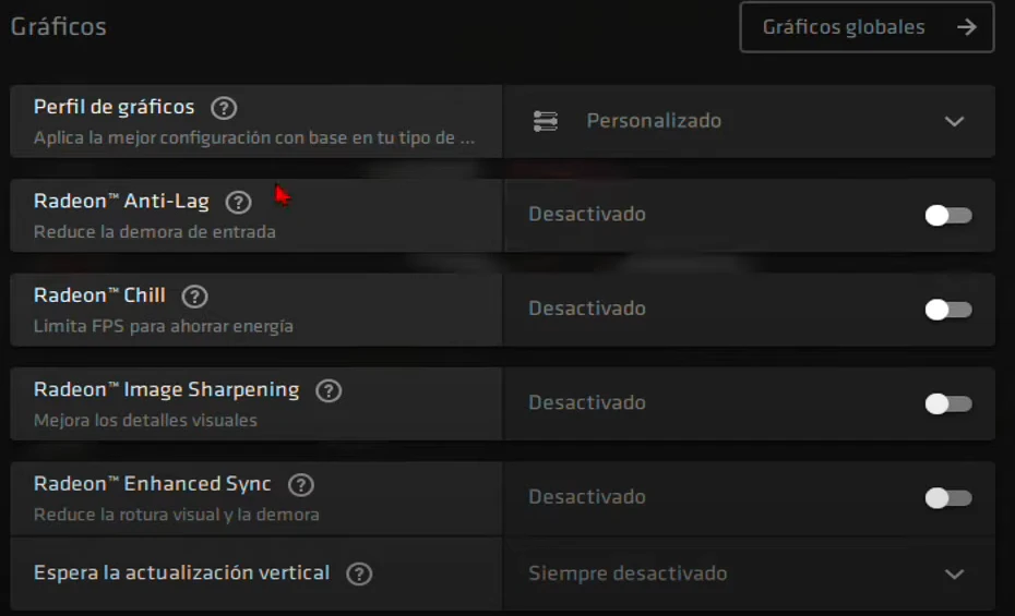 • Radeon Anli-Lag: Desactivado