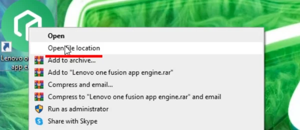 1. Ubicate en el icono de Lenovo y presiona click derecho y click en Abrir ubicación del archivo.